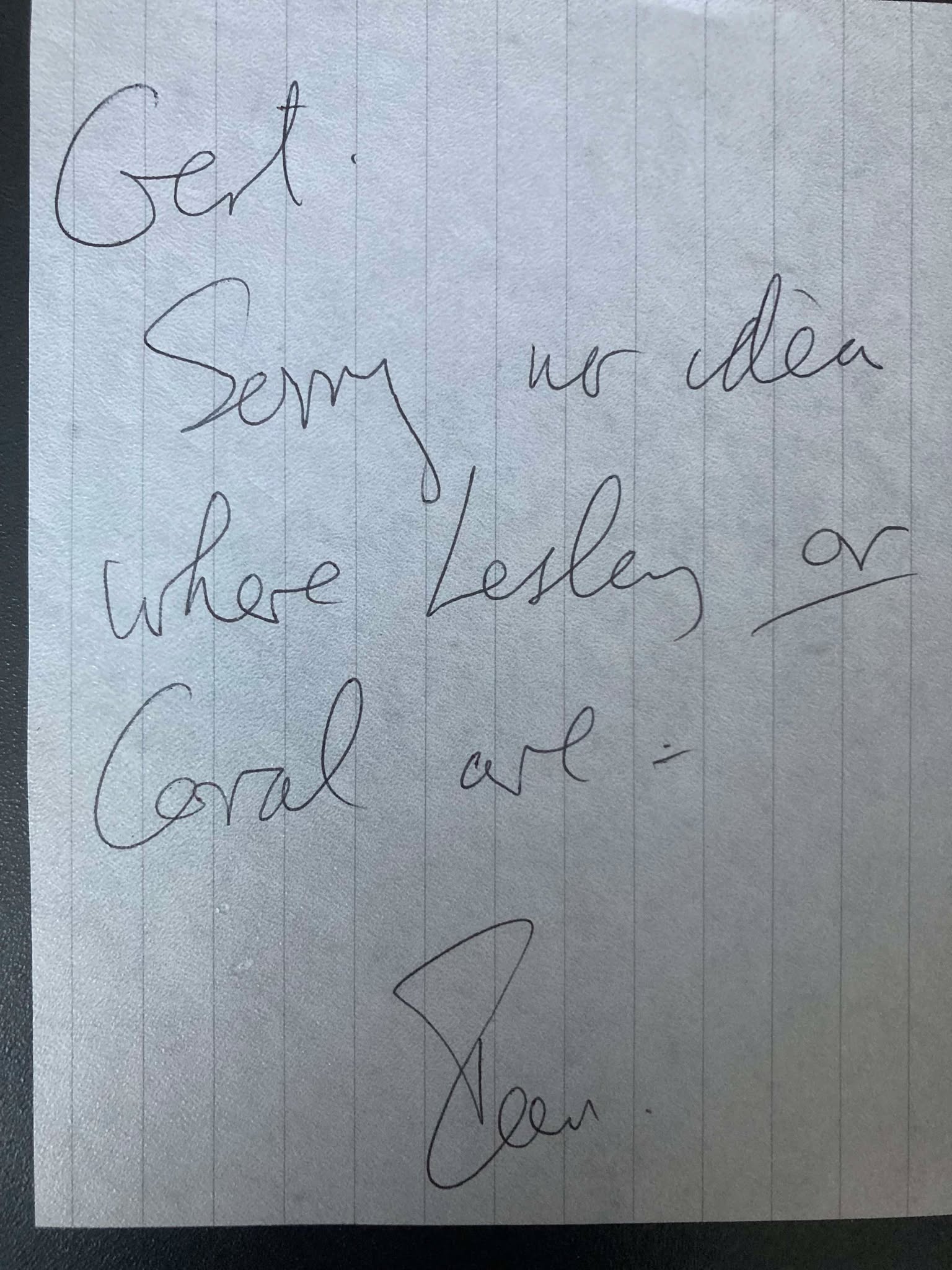 Lesley and Coral. As you can see he was not able to help me. Still he very