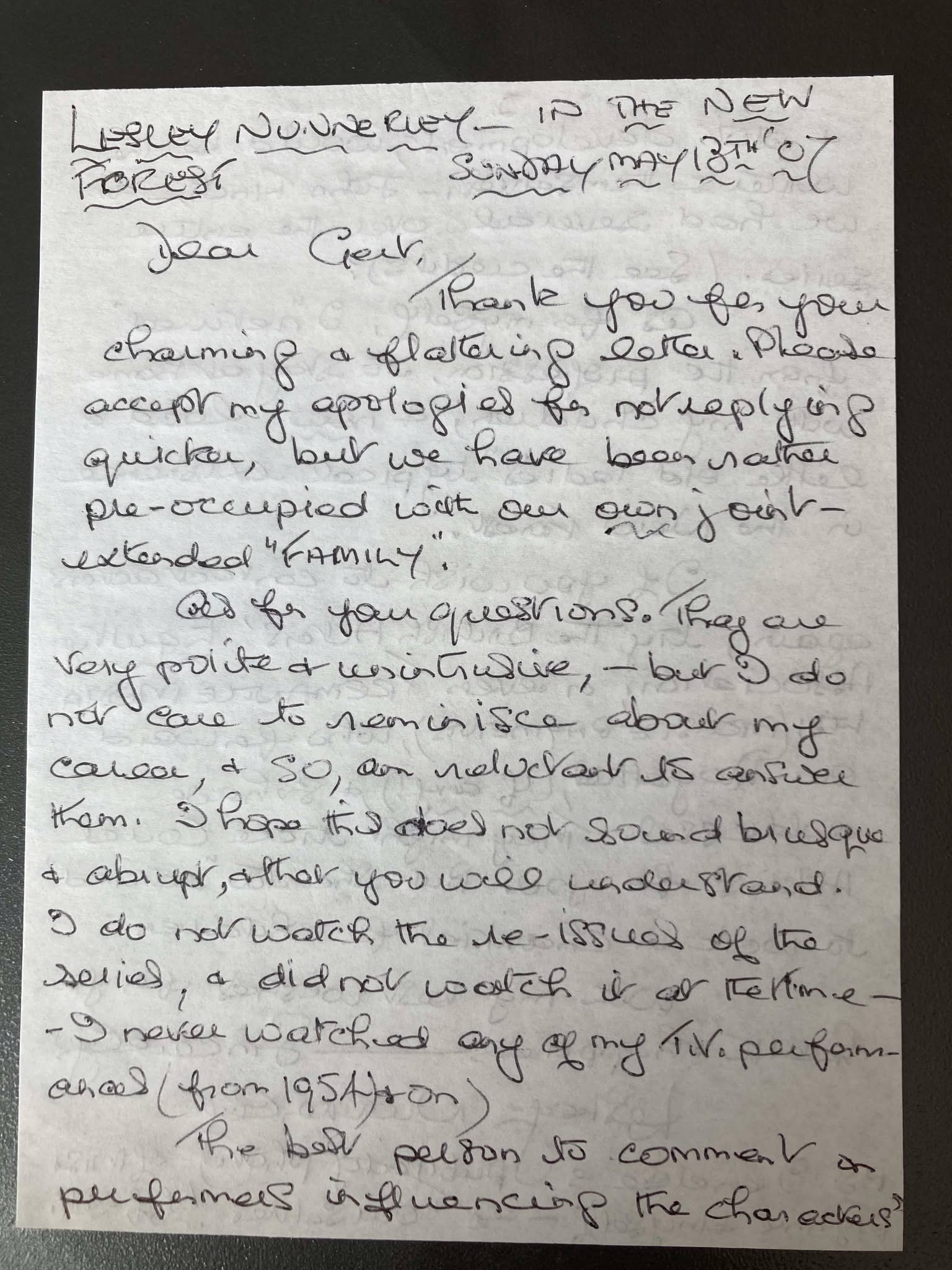 Through mysterious ways I got in contact with Lesley in 2007 and she sent