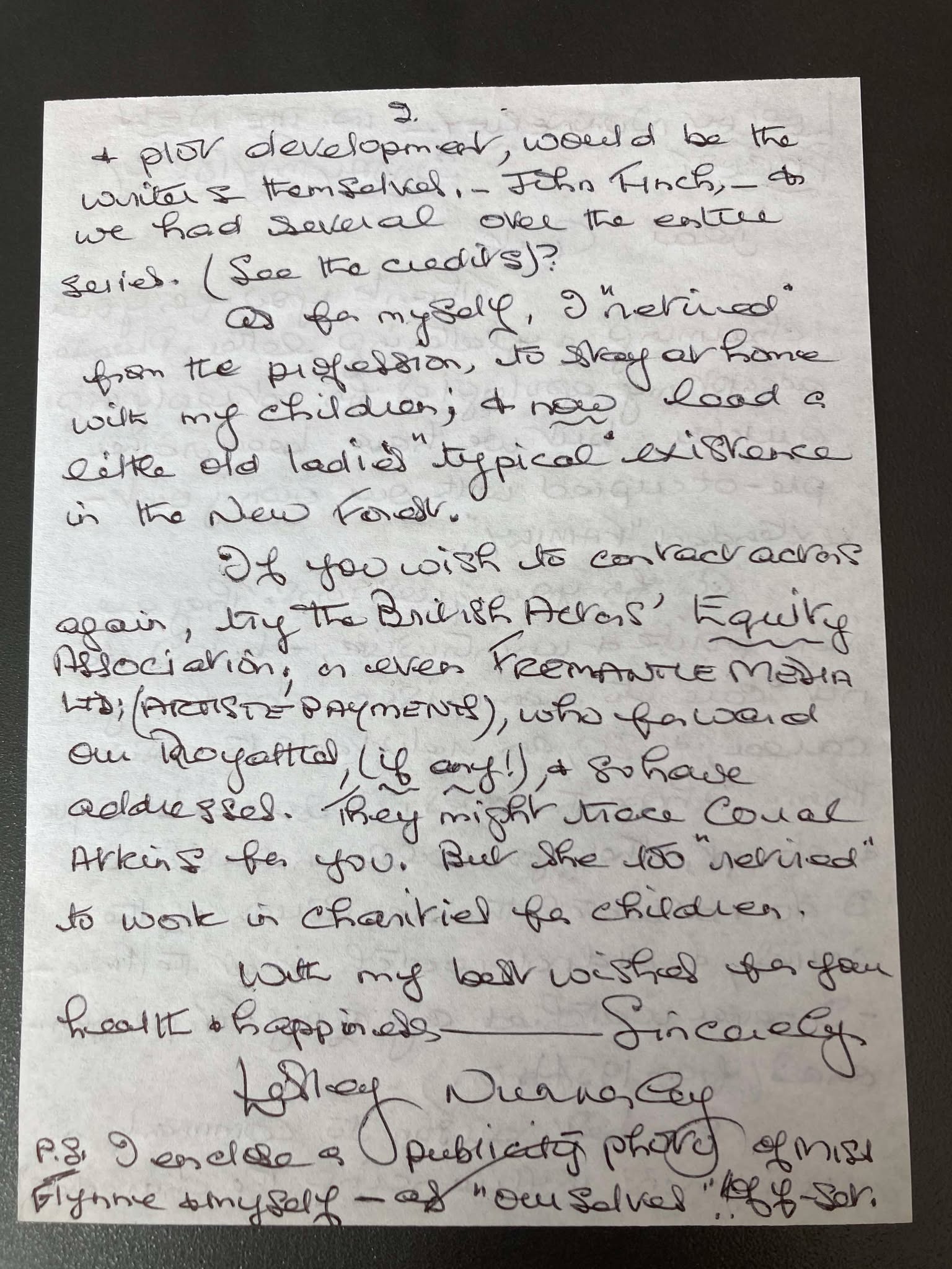 me quite a long letter. Apart from asking about signatures on photos I had