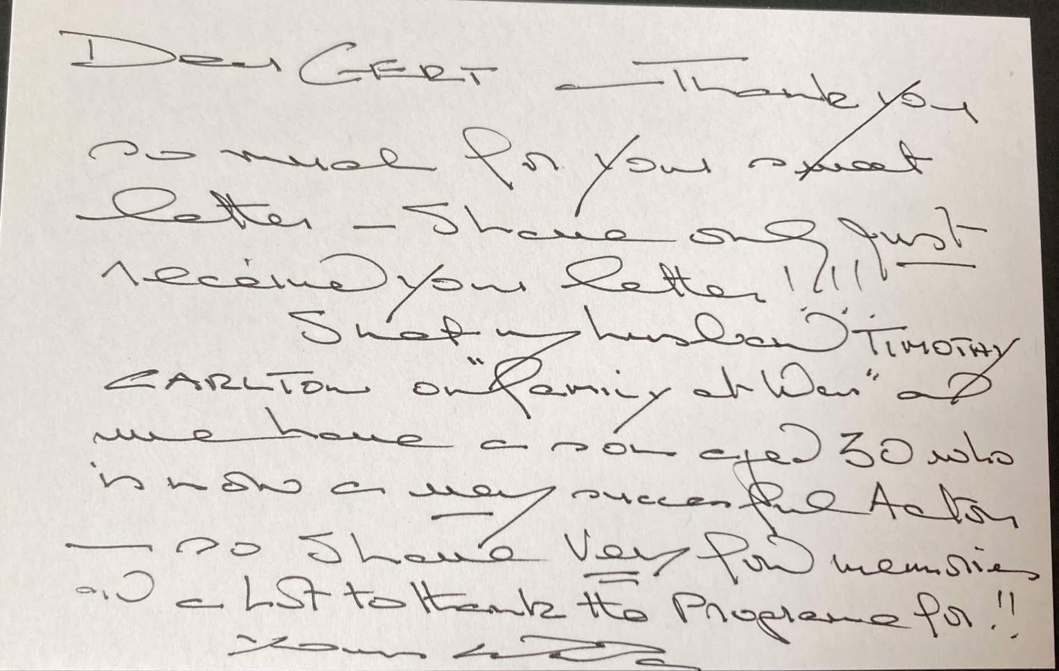 played by Wanda Ventham. Wanda was also very forthcoming when I wrote to