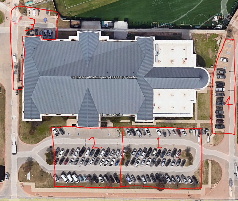 You may have noticed that Aramark has been re-striping the parking lot today. Please reference the map below. They will finish area #1 today and work on area #2 tomorrow. They will be roping off area #2 tonight, so please move your vehicle accordingly.