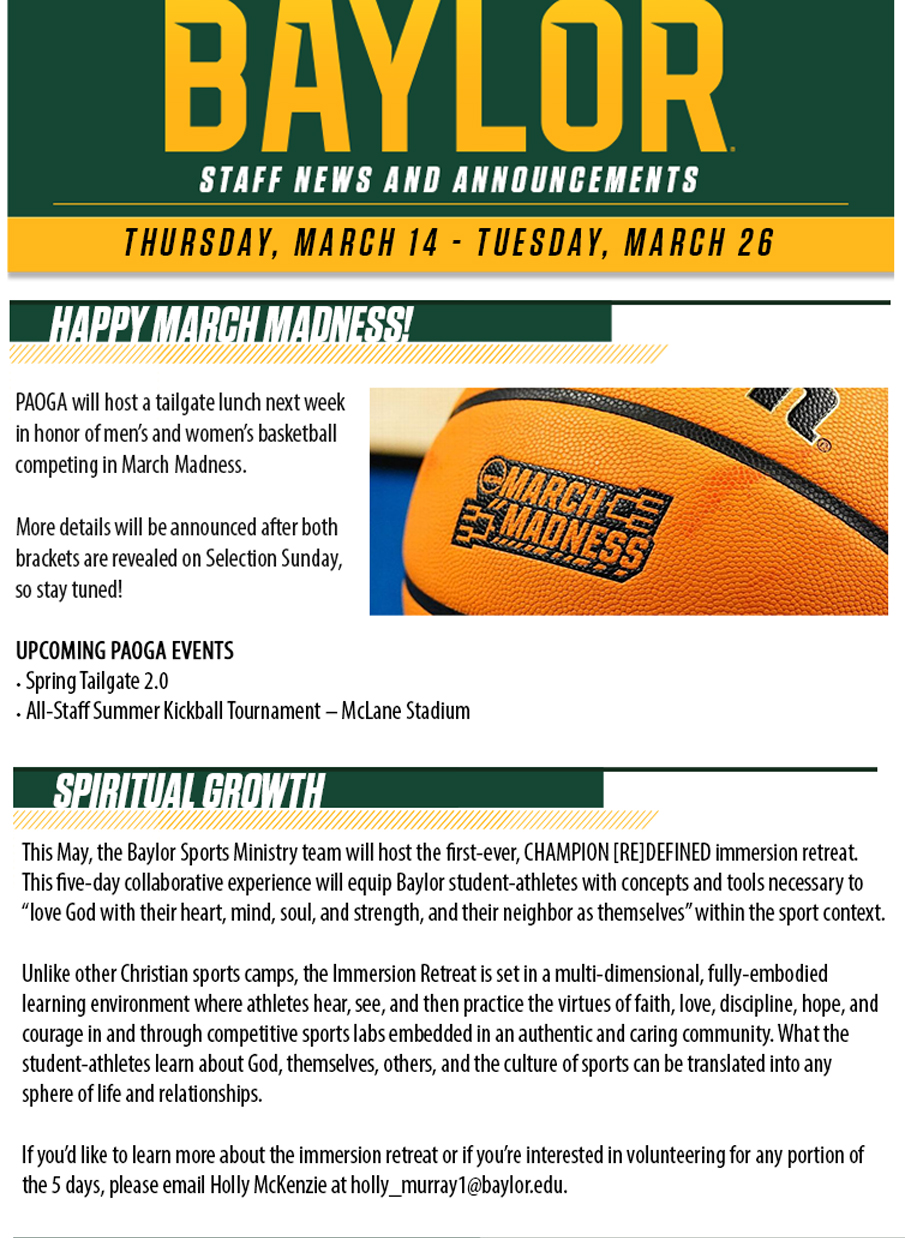Athletics Staff Newsletter | 3.14.24