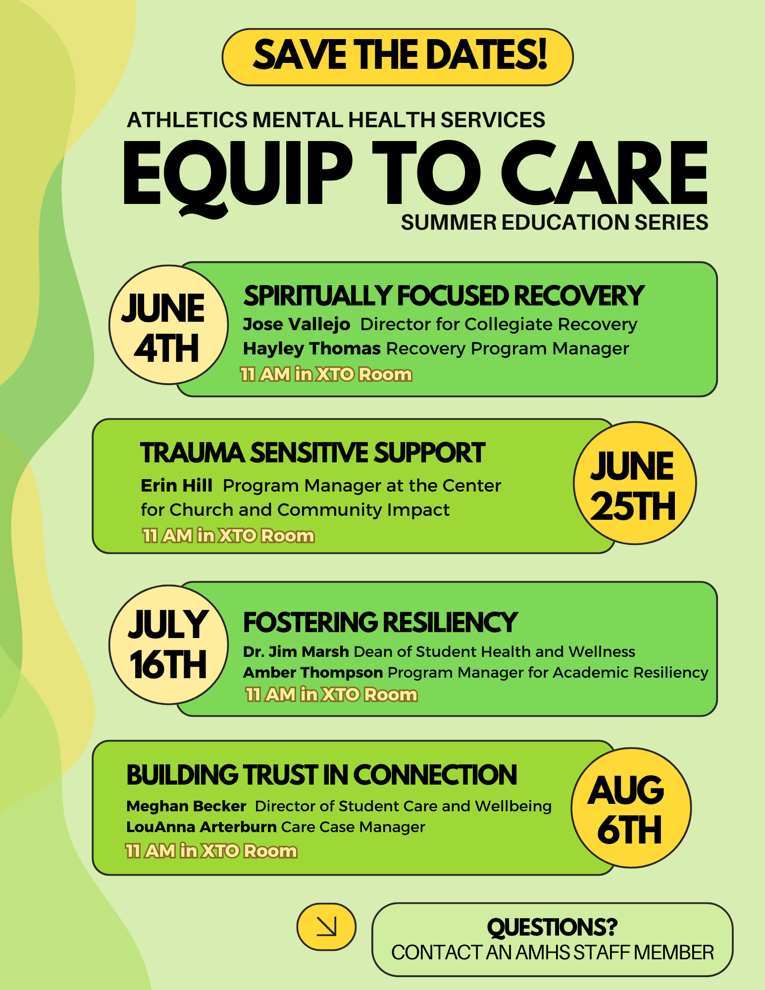 This week, Wednesday, August 6th is the final opportunity in the annual Equip to Care staff summer education series. The topic is “Building Trust in Connection” and will be presented by Meghan Becker, Director of Student Care and Well-Being, and LouAnna Arterburn, Care Team Case Manager.