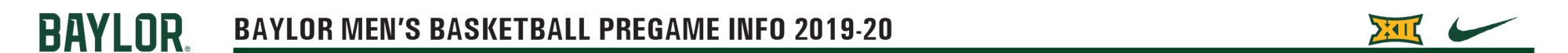 • Jared Butler has led BU in scoring in 5 of 6 games. He leads the Big 12 in 3FG% (.525), FT% (17-17), and 3FGs/gm (3.5), ranks 2nd in scoring (19.3), 3rd in FG% (.534), 5th in steals (2.0) and 11th in assists (3.5).